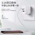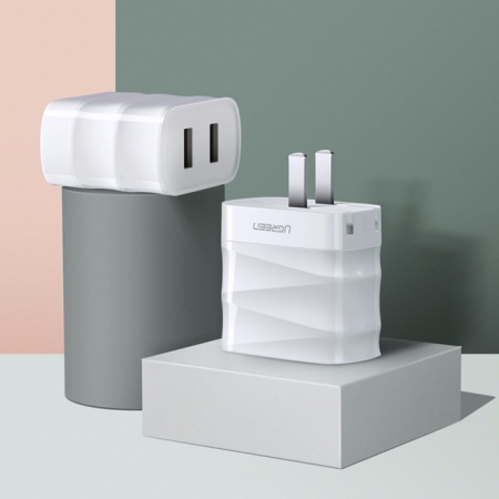 绿联竹节款USB充电头搭载双USB充电口,两个手机同时充电更方便。