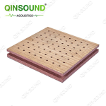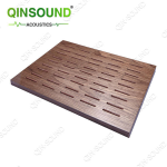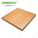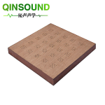 Qinsound Wooden Perforated Wooden Acoustic Panels is wildly used in public area with it's good sound effect, variety of color and durable finishing. The panels have longitudinal grooves and slats, machined along the length of the panel.These panels are consist of a laminate finished surface, base core board and black acoustic felt attached on the back. The base core board is an 15mm thick MDF sheet (Middle Density Fiberboard) with a finish laminated to its front face and black acoustic felt adhered to its rear face. It is suitable for dancing hall, hotel, school, exhibition, office, lecture theater etc.