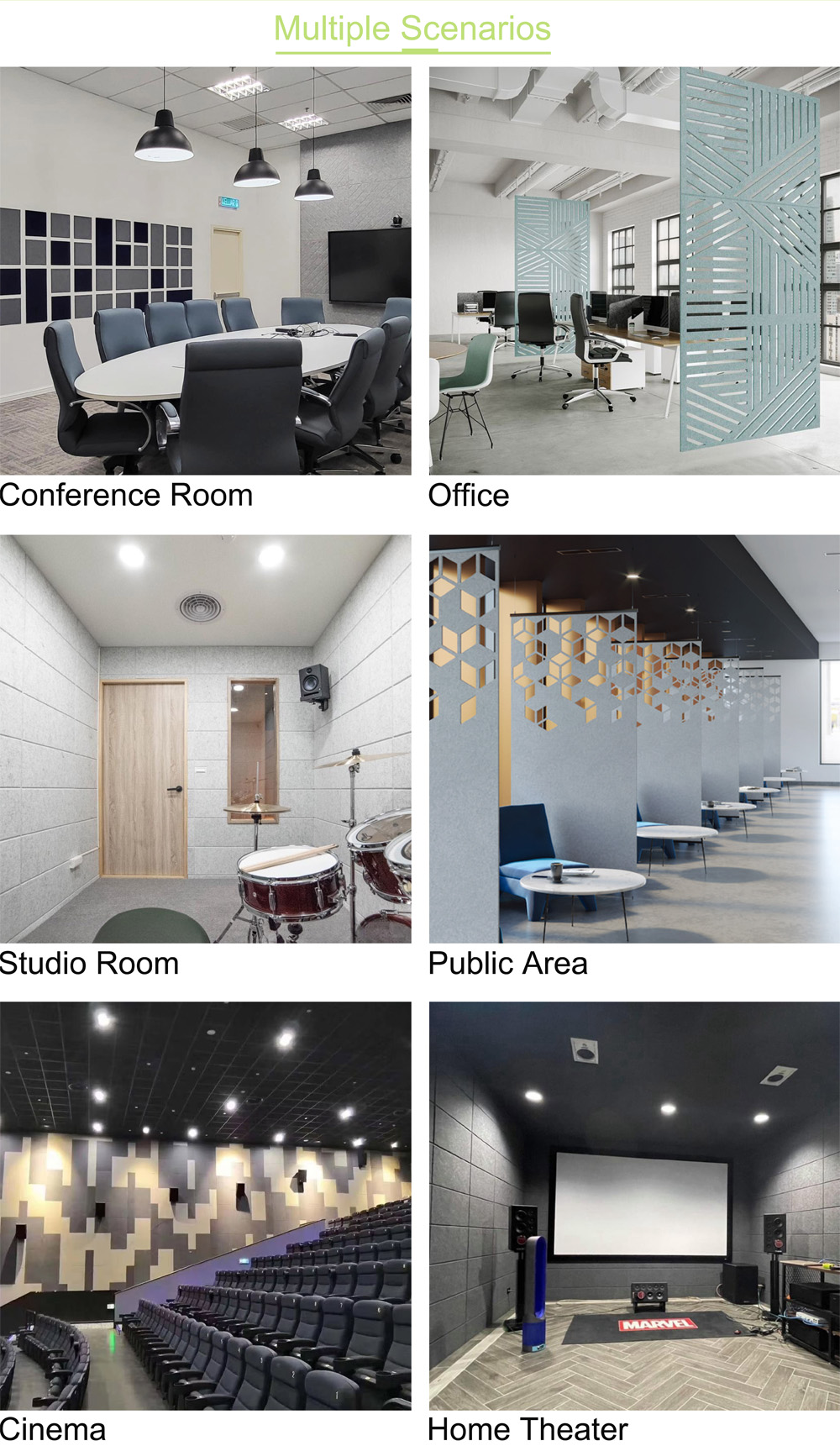 A:We combine high acoustic performance, customizable design, and reliable quality, making our fiberglass panels ideal for both functional and decorative applications.