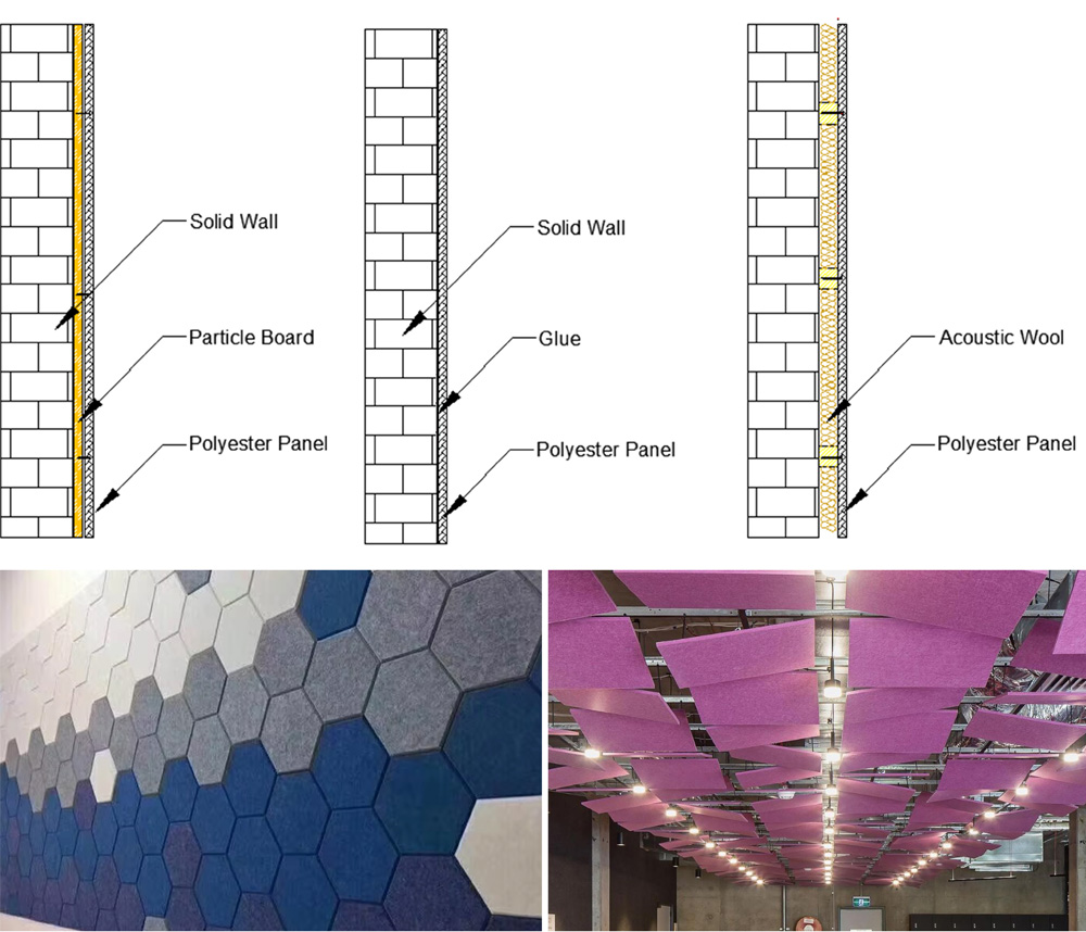 A:We use high-density polyester fiber or fiberglass core with a durable fabric surface, ensuring excellent sound absorption and long-term performance.