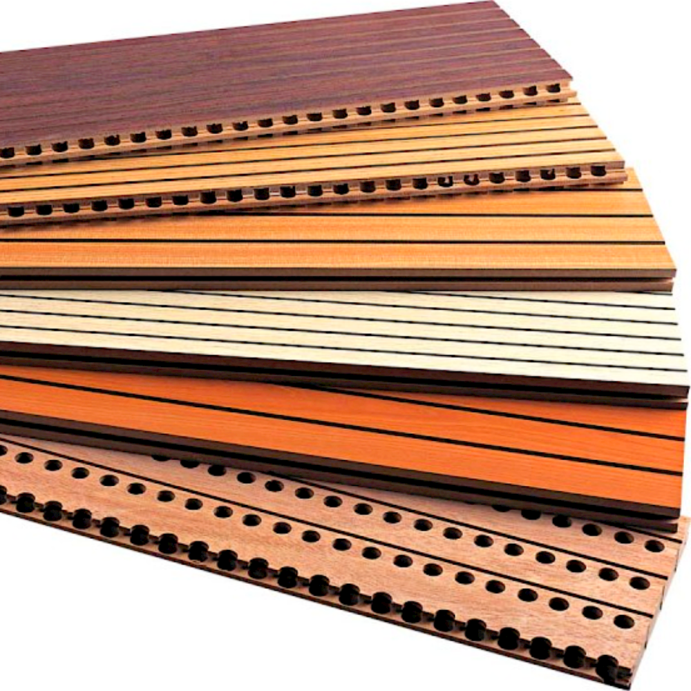 Qinsound Wooden Groove Wooden Acoustic Panels is wildly used in public area with it's good sound effect, variety of color and durable finishing. The panels have longitudinal grooves and slats, machined along the length of the panel.These panels are consist of a laminate finished surface, base core board and black acoustic felt attached on the back. The base core board is an 15mm thick MDF sheet (Middle Density Fiberboard) with a finish laminated to its front face and black acoustic felt adhered to its rear face.It is suitable for dancing hall, hotel, school, exhibition, office, lecture theater etc.