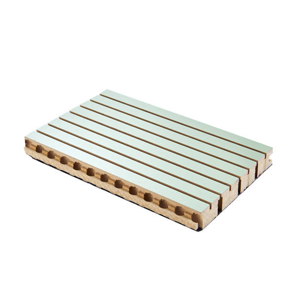 Qinsound Wooden Groove Wooden Acoustic Panels is wildly used in public area with it's good sound effect, variety of color and durable finishing. The panels have longitudinal grooves and slats, machined along the length of the panel.These panels are consist of a laminate finished surface, base core board and black acoustic felt attached on the back. The base core board is an 15mm thick MDF sheet (Middle Density Fiberboard) with a finish laminated to its front face and black acoustic felt adhered to its rear face.It is suitable for dancing hall, hotel, school, exhibition, office, lecture theater etc.
