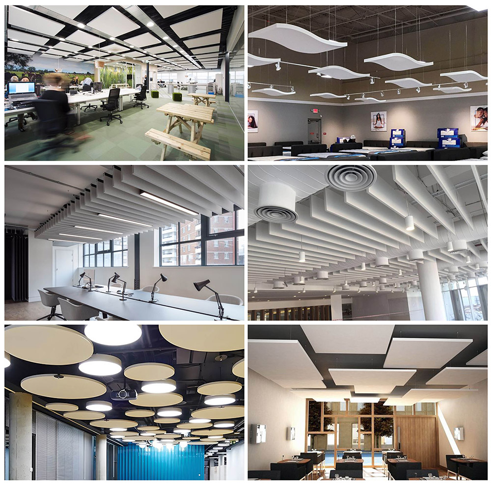 Fiberglss ceiling board is widely used to absorb sound in hospital, hotel, office, auditorium, stadium,etc. Especially in cinema,home theatre, conference room, interrogation room.