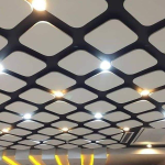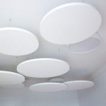 Qinsound fiberglass ceiling board are made of fiberglass and spray paint on surface, have excellent soundproof performance in both mid and high frequency. They are decorative and easy to installed. The paint on the surface are available in different colors and patterns. Customized is acceptable, you can also provide your own fabrics and designs.