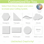 Qinsound fiberglass ceiling board are made of fiberglass and spray paint on surface, have excellent soundproof performance in both mid and high frequency. They are decorative and easy to installed. The paint on the surface are available in different colors and patterns. Customized is acceptable, you can also provide your own fabrics and designs.